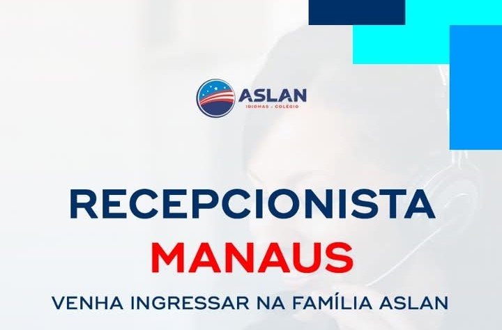 A vaga é para atuar na unidade da ASLAN Idiomas em Manaus. O horário de trabalho será informado no processo seletivo, mas geralmente acompanha o funcionamento das turmas da escola, com jornada administrativa e de atendimento ao público.