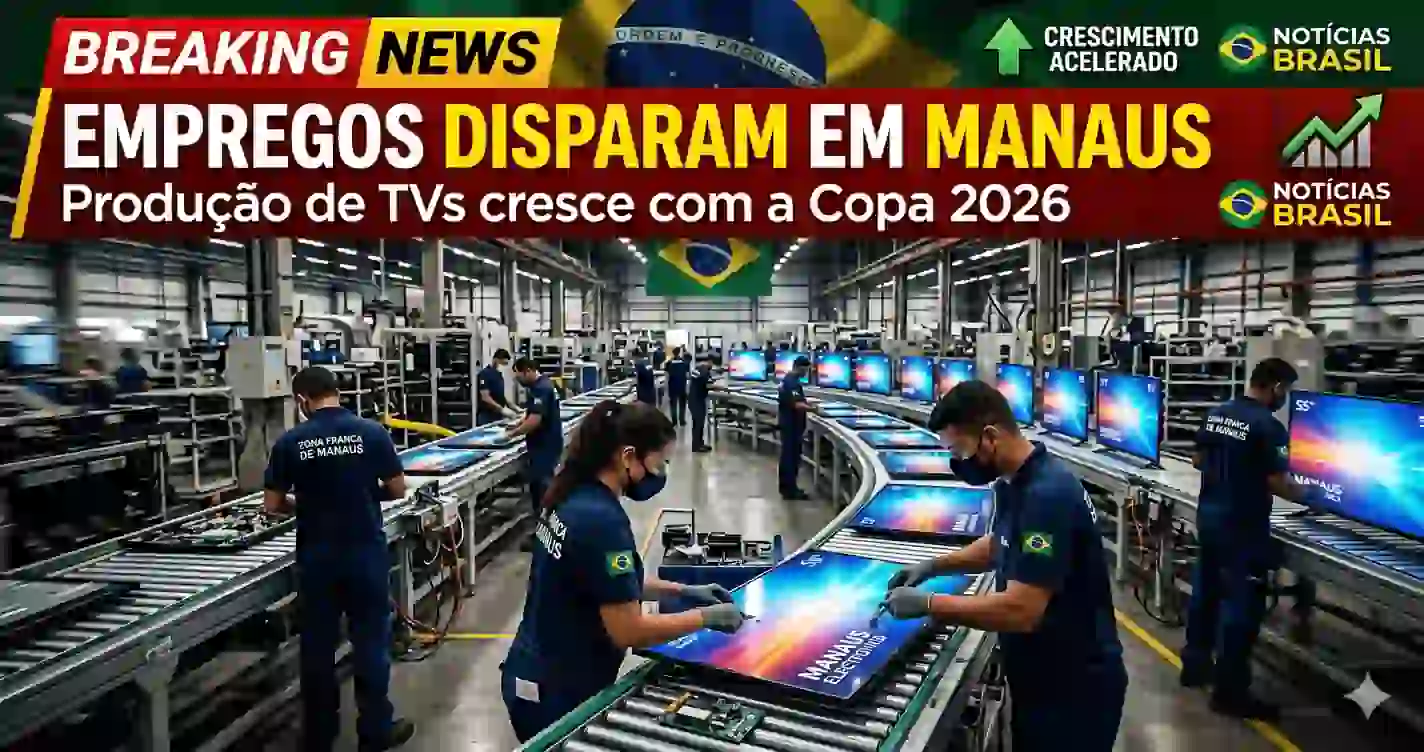 A proximidade da Copa do Mundo FIFA 2026 já começa a impactar diretamente a economia brasileira — e um dos maiores beneficiados é o Polo Industrial de Manaus (PIM). O setor de eletroeletrônicos, especialmente a produção de televisores, dá sinais claros de retomada, impulsionando também a geração de empregos na região.