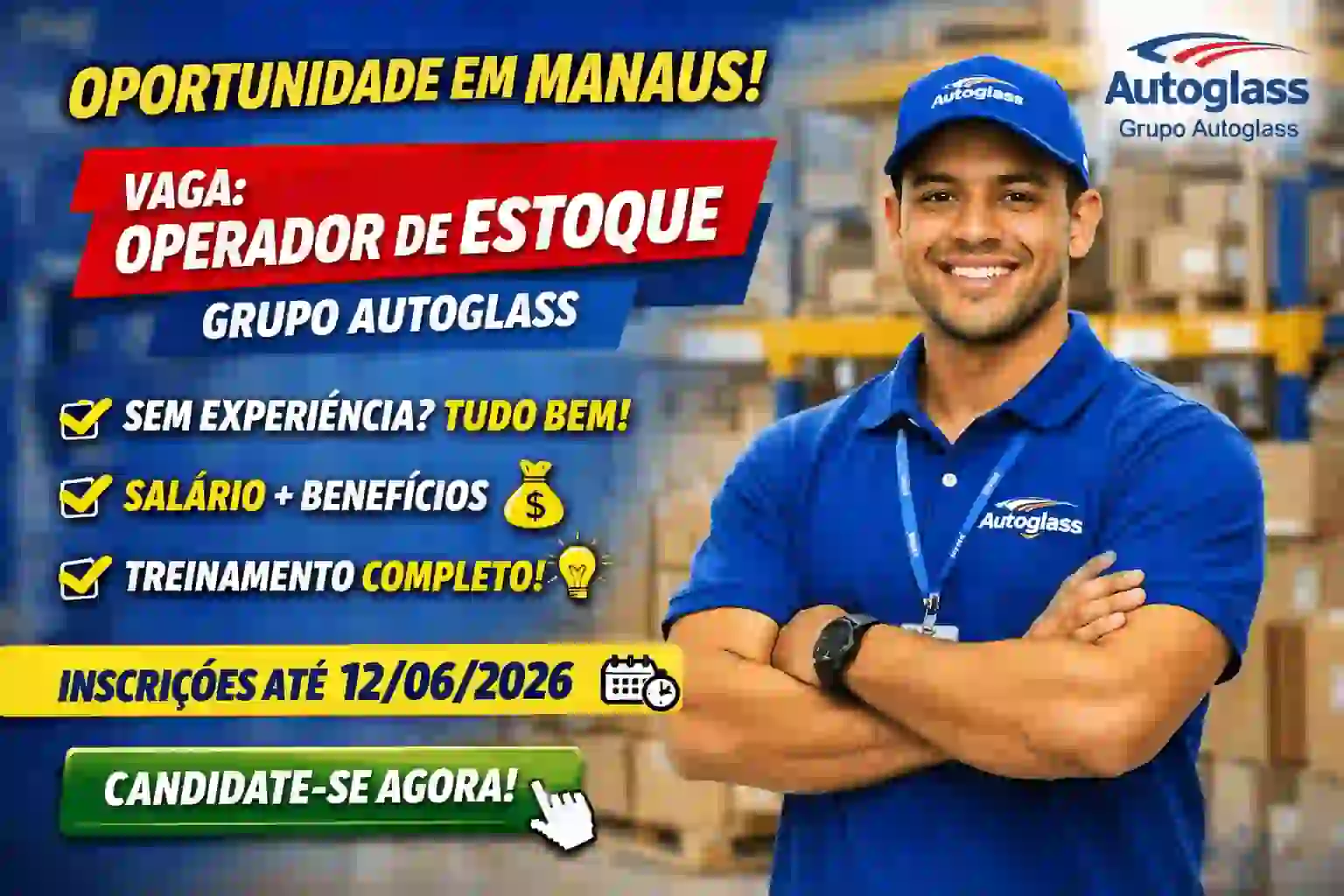 Operador de estoque Manaus, vagas em Manaus 2026, Grupo Autoglass vagas, emprego logística Amazonas, trabalhar em Manaus, vagas sem experiência Manaus, estoque Autoglass.