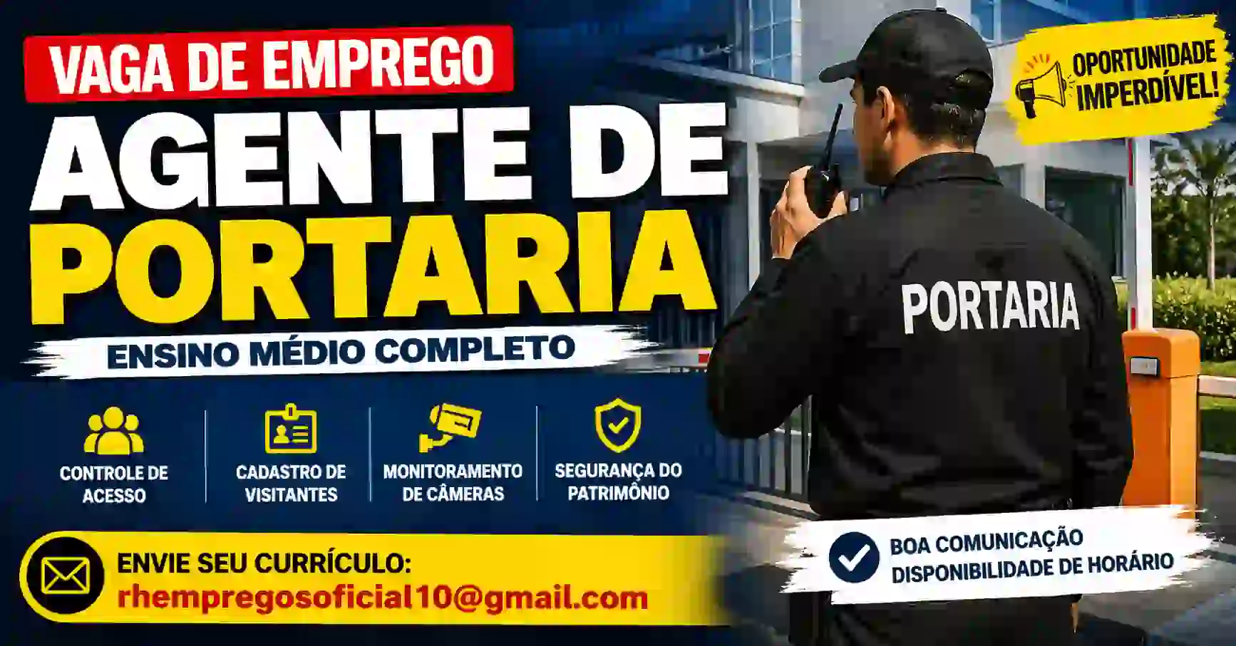 Uma nova oportunidade de emprego está aberta para quem busca uma colocação no mercado de trabalho. A vaga é para Agente de Portaria, ideal para profissionais responsáveis, atentos e comprometidos com segurança e organização.