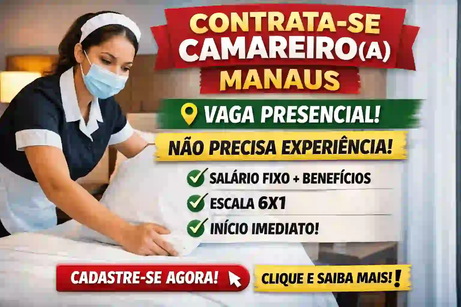 🧹 Camareiro em Manaus: Hotel abre vaga presencial com contratação imediata